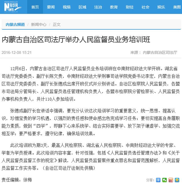 新华网:http://news.xinhuanet.com/legal/2016-12/09/c_129396689.htm