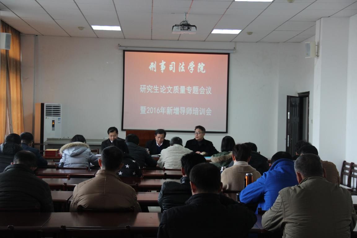 2016年12月15日下午14:00,刑事司法学院在文治楼206会议室举行了2016年度新增导师培训会暨研究生学位论文质量专题会议。会议由院长胡向阳教授主持,副院长童德华教授、董邦俊教授及研究生导师参加了??会议。