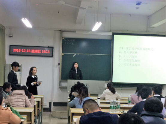 新闻网讯(张艺丁驿然)2016年12月16日晚7点,由刑事司法学院、公共管理学院和财政税务学院三院研究生会协办的“博文明理,智汇中南”知识竞赛于文添楼212顺利举行。