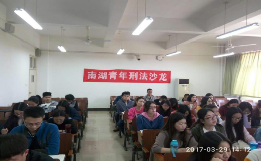 (学生记者张湄茹)2017年3月29日下午14时,南湖青年刑法沙龙第四十二期学术讨论会在文添楼403教室顺利召开。本次学术讨论会以“于欢无罪——正当防卫之肯定”为主题,由16级刑法学博士生罗世龙担任主讲人。本次学术讨论会由16级刑法学硕士研究生刘天同学主持,我院童德华教授、杨柳老师出席了活动。