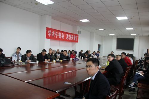新闻网讯(学生记者赵元哲)学术午餐会,思想来聚汇。3月30日上午11时40分,受我院杨立云副教授的邀请,访美学者张克文副教授以《结果无价值论与行为无价值论批判---以主客观相一致原则为指导》为主题的学术交流午餐会于文治楼二楼正式举行。本次午餐会由杨柳老师担任主持,王安异教授总结点评。我院党委书记李宏,院长胡向阳教授及十余名老师与同学们汇聚一堂展开本次学术交流活动。学术午餐会分为三个环节,主讲人演讲、师生提问、点评人陈述。