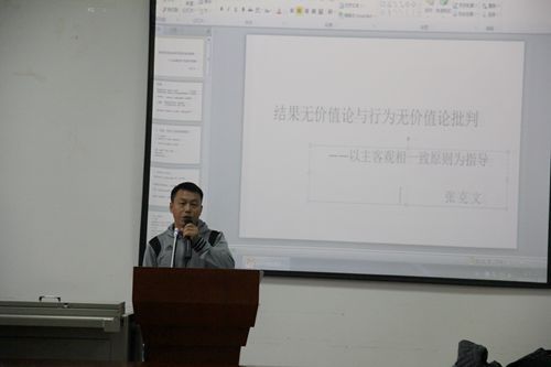 主题演讲中,张克文老师别具一格地提出对结果无价值论和行为无价值论的批判,主张结果无价值论和行为无价值论的主客观相统一,他指出主客观相统一原理具体到刑法理论中,从犯罪构成结构来讲,任何犯罪都是主观意识支配之下实施的,是主观与客观的统一,但是认定犯罪是无关的第三者从外部来进行判断,犯罪是主客观的统一,这里的主观方面能否直接作为判断的依据,恰恰就是结果无价值论和行为无价值论争论的关键,就是主观方面的定位问题。演讲中,张老师重点对结果行为的二元论违法概观及结果无价值论和行为无价值论的二元融合的内容做出详细阐述。最后,指出结果无价值和行为无价值的同一论是方法论意义上的同一,支持或质疑哪一方均是一种在逻辑上的彼此误解,而没有其他任何意义。所以其所说的同一论的观点,更多的是一种否定的终结性的观点。