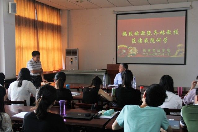 (学生记者江淼白杨)6月1日上午9时,中国政法大学刑事司法学院刑法学研究所阮齐林教授于文治楼二楼会议室为我院师生带来一场关于“从热点案件谈犯罪的评价体系”的精彩讲座。本次讲座由齐文远教授担任主持人,出席讲座的有童德华教授、周详教授、郭泽强教授以及法学院张继成教授等以及刑法学研究生参加并聆听了本次讲座。