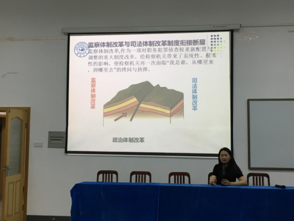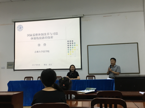 (学生记者张湄茹)6月11日下午2:30,吉林大学法学院副院长徐岱教授于文清楼四楼会议室为我院学子带来一场关于“国家监察体制改革与司法体制衔接路径探析”的精彩讲座。本次讲座由童德华教授担任主持人,我院部分本科生、研究生参加并聆听了本次讲座。