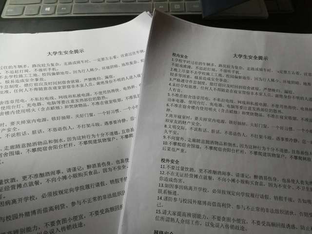 首先,张朱盟同学简要介绍了关于安全教育方面的知识,提示各位同学在假期离校前,妥善保管好自身财物;并注意用电安全,离开寝室时,请自觉关闭、切断所有电器、电源,并锁好门、关好窗,做到文明安全离校。之后,给同学们提出身边存在的一些安全隐患,让同学们通过自我思考,自我剖析,结合自身经历,谈谈该隐患可能给我们带来哪些不利之处,以及针对这些我们应该采取的措施,让同学们认识到自己在安全防范方面存在的不足,从而达到提高同学们安全防范能力的目的,提醒回家的同学,在家中也不要忽视安全问题,凡事安全第一。最后,给每位同学发放了《大学生安全提示》,让大家进一步学习安全知识。