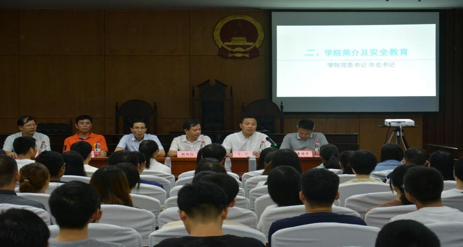 会议伴随着国歌的奏唱拉开帷幕。学院党委书记李宏书记首先代表全院师生发表了热情洋溢的讲话,热烈欢迎新同学的到来。他从学校学院的发展历史为切入点,幽默诙谐介绍了实力和颜值并有的豪华导师阵容,他指出,我院师资力量雄厚,科研硕果累累,学生社团在各类竞赛中百花齐放。对于刚刚入校的新生,李宏书记提出了三点希冀:第一,遵章守纪;无规矩不成方圆,研究生作为学生要遵守学校的规章制度;作为社会人,要遵守国家的法律法规;第二,牢固树立安全意识,防火防盗防诈骗,保持头脑清醒,谨慎交友;注意人身财产安全、食品安全、网络安全、非法传销等,谨防校园贷的发生。第三,学会感恩;感谢老师的教诲,同学的守望相助,珍惜来之不易的学习机会,做好点滴小事,既要强身健体,又要健全人格品质,与人和谐相处。李宏书记表示,我们的学生走进学院是我们的希望,走出学院是我们的骄傲。