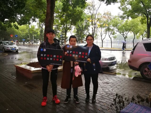 “拯救共享单车,安置温馨标语”行动自策划至具体实施历时一月有余。刑司志协与院团委宣传联合会进行合作,设计了一系列为学校师生所广泛接受的优秀温馨标语展牌。在首义、南湖两个校区,食堂外、教学楼前、运动场周边等8个共享单车集中停放的地点,刑司志协设立了“单车文明示范区”。本次行动招募了来自院内外40余名志愿者参与,他们承担起安置温馨标语展牌、正确摆放乱停乱放的自行车自行车、指引校内同学在指定示范区规范停放自行车等志愿责任。在12月的寒风中,他们舍弃了温暖的宿舍,主动走上街头进行志愿服务和义务宣传??吹铰彝B曳诺墓蚕淼コ祷蛘叨怨蚕淼コ岛臀萝氨暧镉衅苹敌形耐?,志愿者们立即上前阻止,并对他们进行善意的规劝和指引。