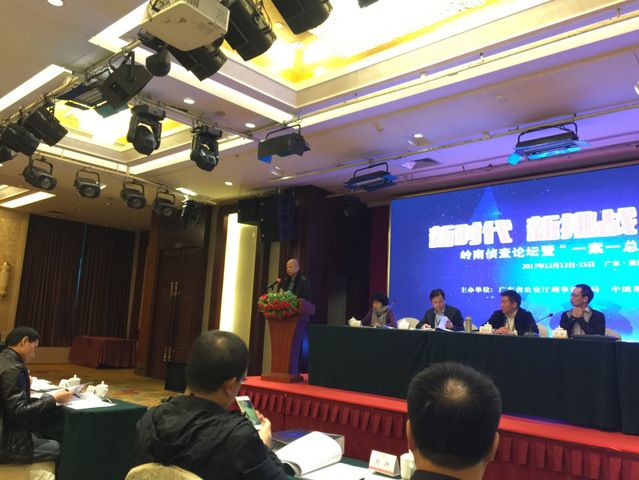 2017年12月13至15日,由广东省公安厅与中国刑事警学院联合主办、清远市公安局承办的首届“中国刑警·岭南侦查论坛”在广东清远市召开。会议围绕“以审判为中心诉讼制度改革背景下的侦查工作创新、都市化过程中刑事犯罪问题、打击多发性侵财犯罪、科技创新与刑侦工作、刑侦队伍建设”等内容征稿100余篇。论文评审专家组由中国刑事警察学院沙贵君教授、董杰教授、刘冲教授,中国人民公安大学马忠红教授,西南政法大学任惠华教授,西北政法大学程军伟教授,中南财经政法大学胡向阳教授7人组成,胡向阳教授作为会议论文评审专家之一,对提交的论文进行了评奖,并于14日上午的大会开幕式上代表论文评审专家作了总结发言。