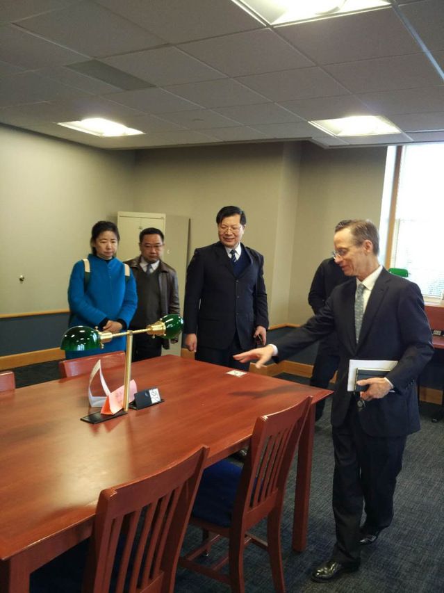 然后,Laity教授带我院访问团成员参观了图书馆、反恐中心、法律诊所等机构、设施,并就教学访问、反恐信息共享等问题进行交谈。Laity教授同意我院深入合作内容与方式,他指出,与我院原来的合作将进一步坚持、深化,双方对协议的内容提出了建议。晚上与我们在该院进行联合培养的学生杨成等进行座谈,并与他们一起参加该学院的宴请。
