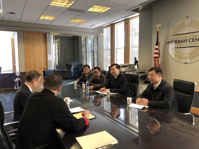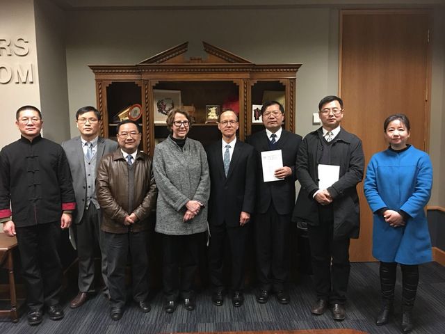 当在时间12月15日下午,代表团到达俄克拉荷马,与俄克拉荷马城市大学(OKLAHUMA CITY UNIVERSITY)探讨继续合作交流事宜。俄克拉荷马城市大学是与我院有良好国际交流合作的基础和历史。我院先后有六位教师在此访学,也有多批次的学生来此进行短暂暑期学习、联合培养。董邦俊副院长首先告诉老朋友Laity教授,我校进入法学一流学科建设的行列,对学院的师资队伍建设、科学研究、人才培养、国际交流等方面向他进行全面的介绍。
