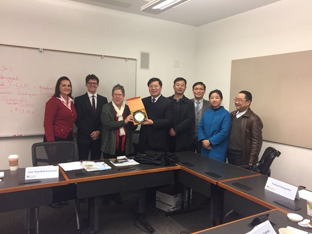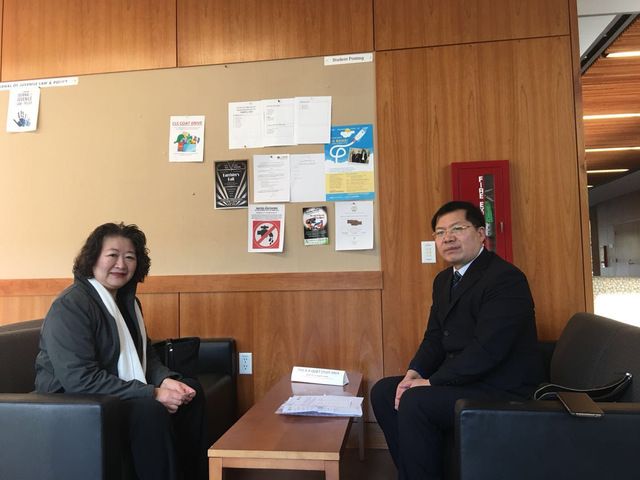 当天,代表团一行与加州州立大学Sacramento分校法学院负责国际交流的任欣教授进行座谈,董邦俊副院长介绍了此行的行程安排,学院的基本情况以及面向未来的发展 目标,然后双方就合作的具体内容进行交流,内容涉及双方的夏令营、法律硕士、教师访学等,达成一致意见。任教授表示,希望加大美方学生赴中国学习的力度。