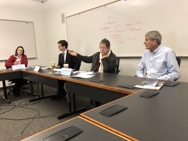 12月15日上午代表团正式与戴维斯大学法学院负责国际交流的副院长GREENWOOD教授进行深入交流,充分了解该校在全美的办学实力、办学条件及教学设施,中国留学生及访问学者在此科研学习的生活费用、安全状况以及来往中美的便利情况等。GREENWOOD教授首先对我院代表团一行表示热烈的欢迎,并对DVIS大学的具体情况进行介绍,董邦俊副院长介绍了学校以及学院的历史发展,双一流学科建设情况。