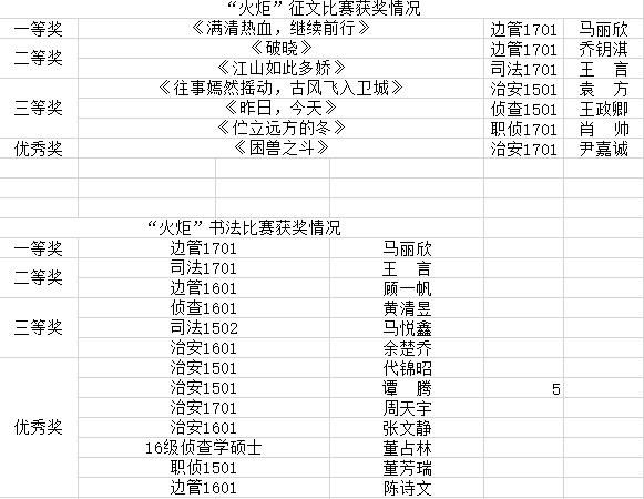 现将刑事司法学院“火炬”征文、书法比赛获奖情况公示,公示期为2017年12月20日—2017年12月23日。
