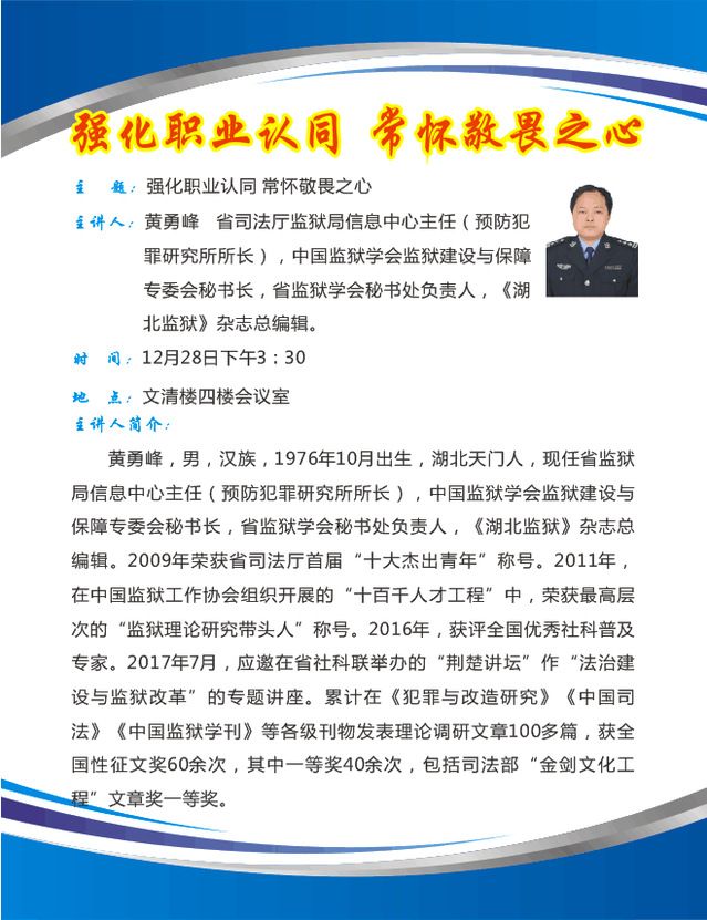 “强化职业认同 常怀敬畏之心” 讲座预告
