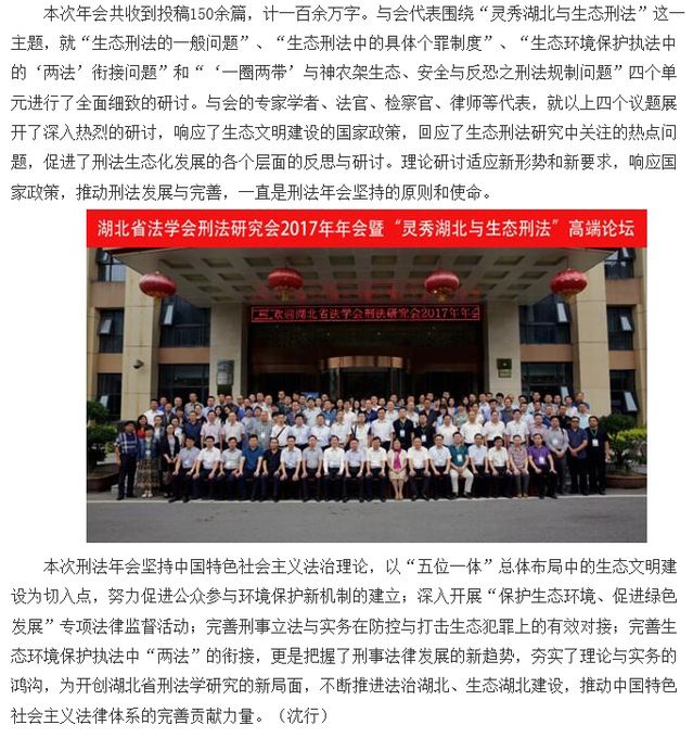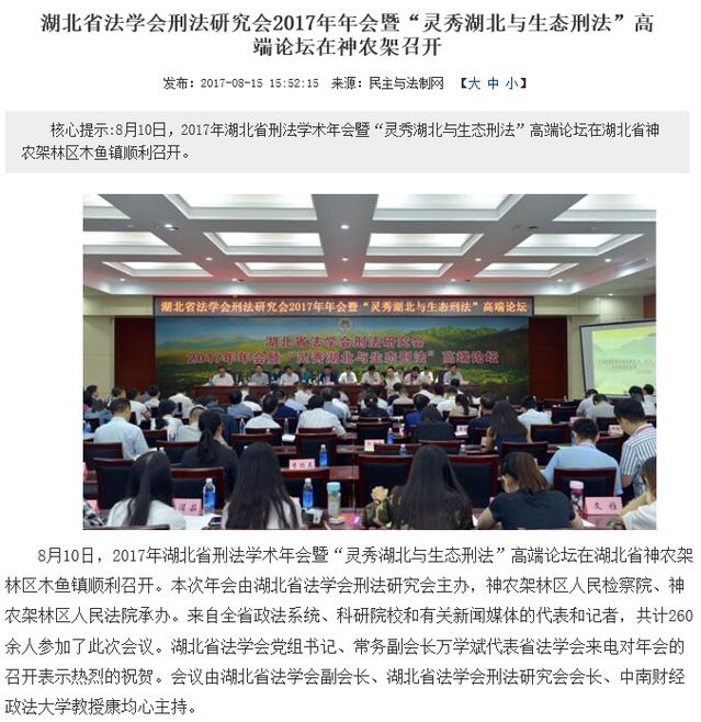湖北省法学会刑法研究会2017年年会暨“灵秀湖北与生态刑法”高端论坛在神农架召开