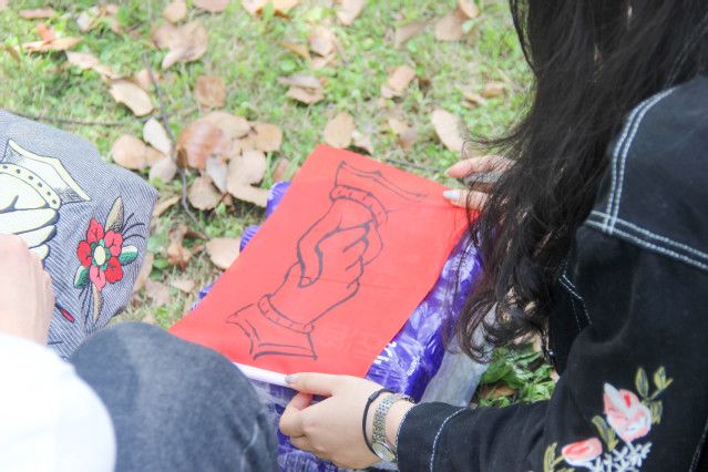 正是素质拓展项目以小组为单位进行。大家随机分为三组,并随机进行团队文化建设,要求各组在十二分钟内完成如下内容:团队名称、口号、队长、队旗、出场秀的设计与展示造型,最后由各小组依次完成集中展示。“杜康”队、“心心相印”队、“健康佩奇”队,三个队伍将心理健康与队伍特点结合起来,队名、口号饶有趣味,展示形式丰富多彩,各具活力特色。