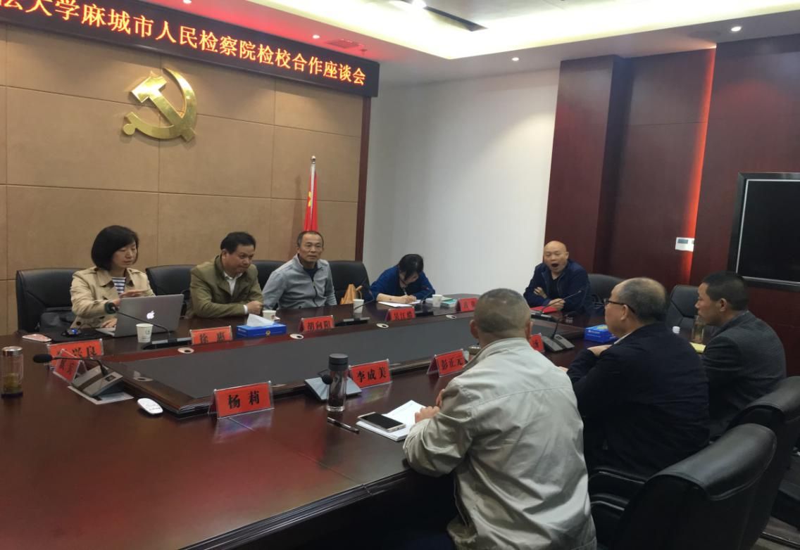 下午5时许,胡向阳院长一行到达麻城市人民检察院。麻城市人民检察院检察长彭正元对胡向阳教授一行表示热烈欢迎,并对吴江皓等老师长期给予麻城市未检工作的专业支持表示衷心感谢。接着胡向阳院长介绍了随行人员,并就此行目的做了简要说明。随后双方与会人员就检校合作项目“检察机关内设机构改革研究”进行了热烈讨论,并就项目的开展形成初步方案。麻城市人民检察院副检察长李成美、政治处主任刘旸参加了上述座谈会。