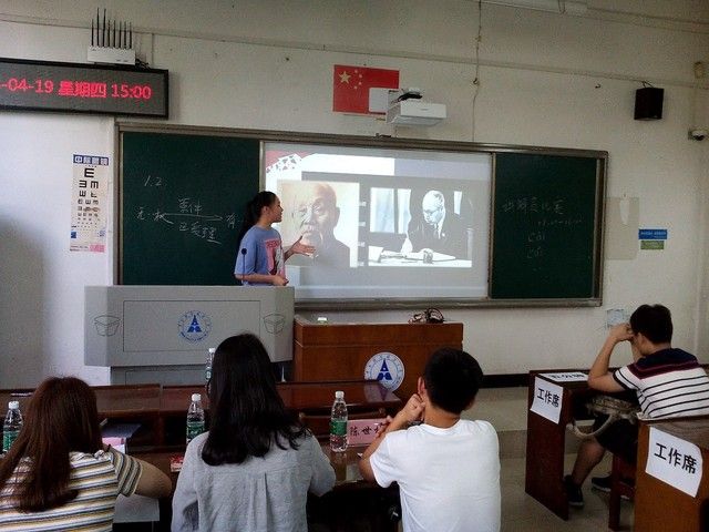 比赛正式开始后, 晋级决赛的选手准备充分, 他们身着正装、精神饱满、声情并茂, 用充沛的感情把师生们带进了一个歌党恩, 颂党情的世界。其中二号选手的演讲《辛亥革命我来说》用饱含深情的语调抒发了对红色文化的挚爱与赞美之情。来自湖南的六号选手——一位地地道道的湖南妹子为我们呈现了声情并茂的演讲《走进伟人故居》表达了对伟大领袖的无比眷恋和对祖国未来的无限憧憬。七号选手的演讲《麻将的进化史》更是别出心裁,无论是选材还是讲解方式都独树一帜,短短的五分钟,她用故事般的讲解为我们呈现了麻将的发展历程。