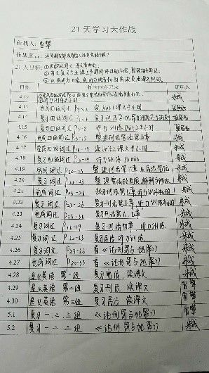 于4月11日开始的为期21天的“学习大作战”计划于日前正式结束,2个班约有80%的同学坚持了打卡。本次活动采用线上线下打卡相结合的方式,在活动开始前,每名同学都拿到了一份“作战计划书”,用以记录21天的目标和每天的学习情况。同时辅助以各类打卡APP,利用这些软件进行书籍阅读、单词背诵等学习。很多同学表示,在打卡计划的鼓励下,自己每天坚持看书、做笔记、背单词等,对于以往的惰性有了很大的克服,同学们也会相互提醒鼓励,班级的学习氛围明显感觉到了提升。