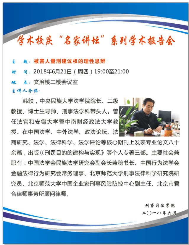 学术校庆“名家讲坛”系列学术报告会————被害人量刑建议权的理性思辨