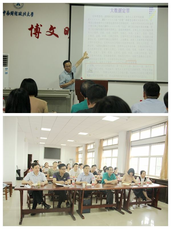 2018年6月19日,中国人民大学法学院刘品新教授应邀来我院给我院师生作了题为“司法科技创新与机制体制创新的双轮驱动”学术讲座。本次讲座由胡向阳院长主持,我院杨宗辉教授、舒玲华副教授、付凤副教授、戴涛副教授、刘建华老师、孙笛老师及广大硕士、博士生参与了该次讲座。这个学术讲座内容是刘品新教授的最新研究成果,也是学院为了深刻地贯彻2016年中共中央、国务院《国家创新驱动发展战略纲要》以及2018教育部《高等学校人工智能创新行动计划》而作出的安排。