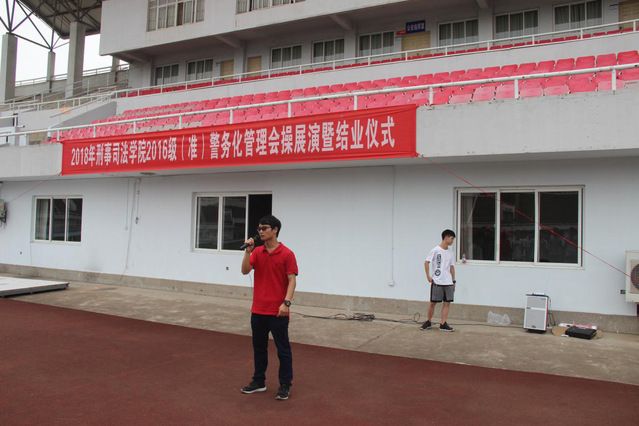 新闻网讯(学生记者 杜诗宇 摄影 宋天宇)6月7日中午12:30,我院2016级全体公安专业学生在南湖校区体育场主席台前举办了(准)警务化管理会操展演暨结业仪式,我院分团委书记、16级公安专业辅导员卓张鹏老师出席会操展演现场。