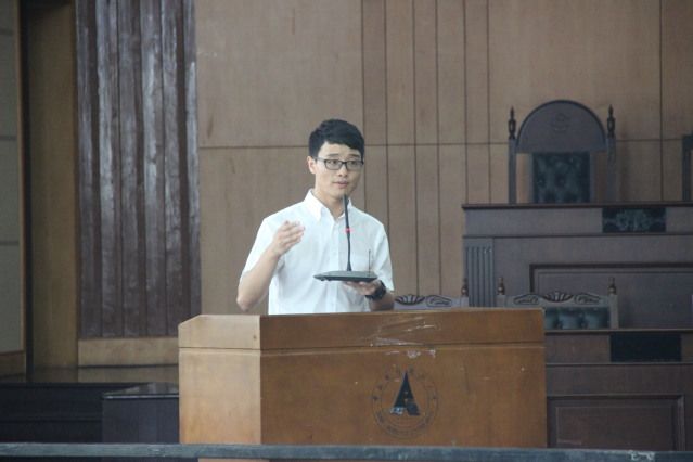 随之,是各组织部门进行工作汇报。团委组织部部长贾亦真、团委宣传部部长方子典、学生会主席赖伟及志愿者协会会长王锐琰依次上台,向大家详细介绍了一年里各部门的工作情况及取得成就。边管1601班团支部书记张月盈作了“十佳主题团日活动”汇报,讲述了他们为第25批阿尔及利亚医疗队制作中国结,传递家乡祝福的努力。来自治安1701班的赵俊皓也作为“最美团支书”获奖者发言,介绍其一年工作经历与心得体会。