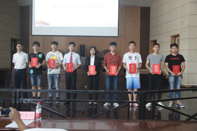 颁奖环节由卓张鹏和郭青川两位老师为优秀集体、个人颁发校级、院级集体奖:红旗团支部、十佳团日活动;校级、院级个人单项奖:校级优秀学生干部,优秀共青团员及优秀志愿者奖项。大会最后一项,宣读刑事司法学院新一届学生组织主要学生干部名单并颁发聘书。
