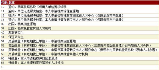 代码11、13、14这种情况,是单位不收档案,档案要去生源地或者在人才市场的,其中13、14仅限于在武汉市就业的。