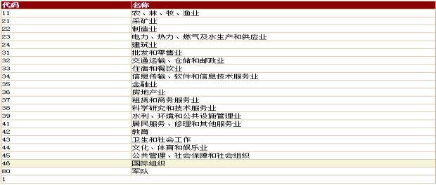 图4 在系统中将单位行业分为以上几类(后文直接称为代码XXX)