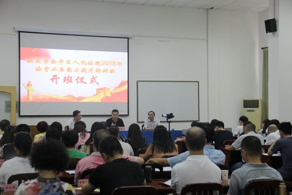 (通讯员于畅)9月3日上午,汕头市金平区人民法院法官业务能力提升培训班开班仪式在文清楼411教室举行。我院党委书记李宏,金平法院党组副书记、副院长林彦发表致辞,培训班49名学员出席了本次开班仪式。开班仪式由我院培训中心主任曾大庆主持。