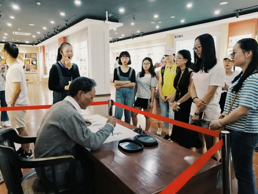 (志愿者讲解邓小平同志书写我校校名 江雪婷摄)