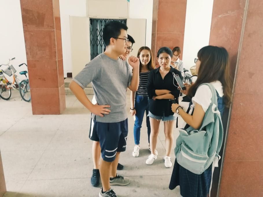 第一站法学图书馆门前挤了好几支队伍,还没有用过图书馆网上选座系统的同学显然对问题难倒了。“图书馆网上订座系统提前多久开启?”,提问者刚抛出问题,同学们就纷纷抢答,“一个小时!”“半天”,最终一名同学上网查询后才说出了正确答案——30分钟。不少同学笑称“看来我还是要多去图书馆呀”,这正是此项活动的目的之一。还有些问题比如校医院在哪儿?图书馆几楼可以朗读等等,正是要通过这种有趣的形式来帮助同学们记住这些小知识,以便于快速适应南湖校区的新生活。