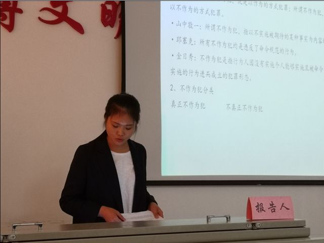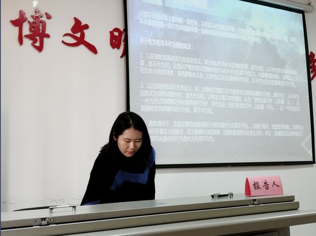 博士生汪千力作了题为《不作为的共犯问题》的报告。详细阐述了不作为的共犯的几个问题,包括以不作为的形式实现的共同正犯、教唆犯、帮助犯等共同犯罪的情况,也包括对以不作为形式实施犯罪的正犯的教唆、帮助的情况,详细介绍了德、日刑法理论的各种学说和主流观点。