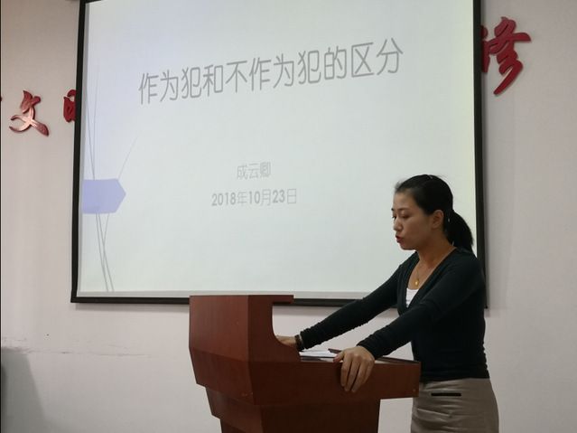博士生成云卿做了题为《作为犯和不作为犯的区分》的报告,通过疑难案例指出理论和实践中对于作为犯和不真正不作为犯区分的争议,梳理学术史关于区分标准的争论,提倡从形式到实质的双重评价标准。