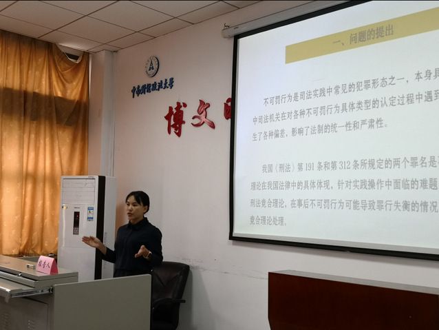 博士生鲁杨莹做了题为《德国不可罚行为理论运用分析》的报告,以刑法行为理论为起点,对德国不可罚行为理论进行概述,介绍了我国事后不可罚理论在实践操作中面临的疑难问题,认为我国可以借鉴德国刑法竞合理论、事后不可罚理论,创设事后不可罚理论适用的规则,以更好的打击犯罪,维护司法统一性。