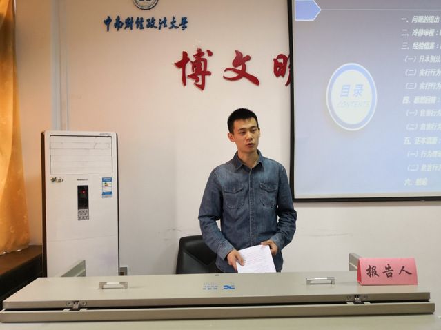 博士生农海东作了题《刑法持有的性质界定研究》的报告,以行为理论与控制理论的观点对立为基础,以具体的持有性质界定问题为主线,详细梳理了与之相关的传统观点争议及发展新思路,最后提出理论接合的可行性建议,是于传统与颠覆之间寻求路径调和的一种尝试。