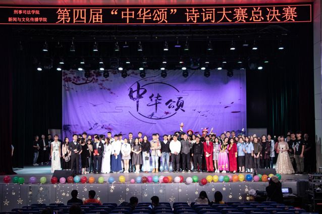 大赛开始前,刑事司法学院声乐团演唱《不负时光》作为暖场节目,“不负时光不负卿”,带领观众们梦回古代,回到屈原的《湘夫人》,回到秋瑾的《鹧鸪天》,为整个现场定下了大气磅礴、恢弘浪漫的基调。