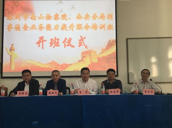 (通讯员叶明)2018年10月29日上午8:30,深圳市南山区检察院、深圳市公安局南山分局刑事侦查业务能力提升联合培训班在文清楼四楼会议室进行,刑事司法学院党委书记李宏教授,深圳市南山区人民检察院党组成员、副检察长魏春元,深圳市公安局南山分局党委委员、副局长曾挺恩,南山区人民检察院党组书记、检察长孙爱军先后发表讲话,本次开班典礼由刑事司法学院培训中心主任曾大庆主持。
