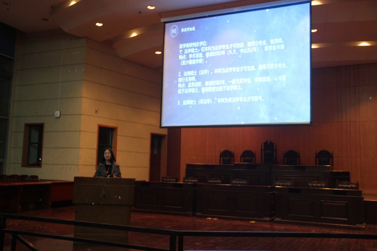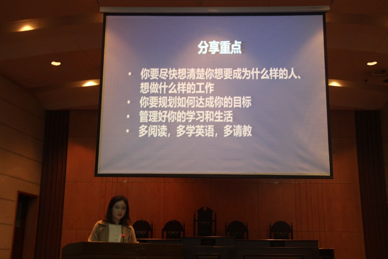 张睿以保研和司法考试为例为同学们详细讲解了如何在大学期间实现自己的目标,为大多数同学需要面对以及关心的学习方向、学习时间的分配问题进行了指导。并且通过介绍自己大学期间的课余生活,为同学提供了参考。