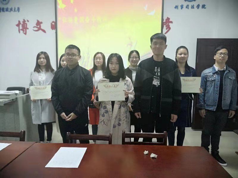 此次活动通过前期六院初赛推选出的代表队参加决赛,比赛分为“必答题”“抢答题”“风险题”三个环节,知识点涉及党章、党史、中央文件、习近平总书记系列重要讲话等,各代表队队员冷静思考、沉着应对、稳中求进,好中求快,将比赛气氛一次次推向高潮,赢得现场观众阵阵掌声。经过激烈角逐,来自马克思主义学院代表队凭借优秀的理论功底摘得桂冠,金融学院代表队获得亚军,我院17级刑法学吴云民、吴超超和姜雅雯组成的代表队获得季军。