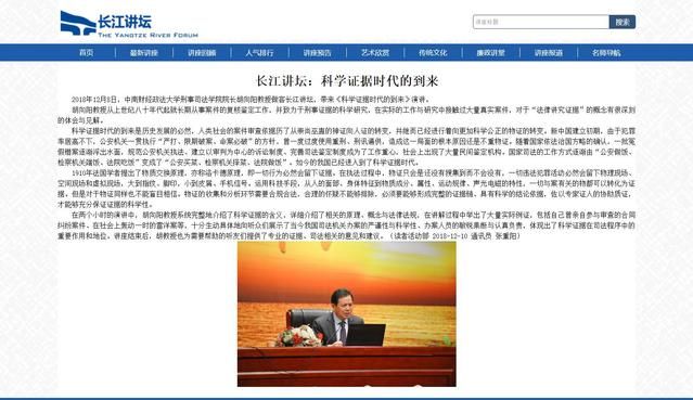 为了宣传习近平同志建设社会主义法治国家的重要思想,坚持法治国家、法治政府、法治社会一体建设,严格依法行政,加快建设法治政府,坚持公正司法,提高人民群众的法律意识。在省委组织部、宣传部、省直机关工委、文化厅的支持下,2018年12月8日,湖北省图书馆主办了大型公益讲座“长江讲坛”-法治讲坛。中南财经政法大学刑事司法学院院长胡向阳教授应邀来到“长江讲坛”,以“科学证据时代的到来”为题进行了专场讲座。