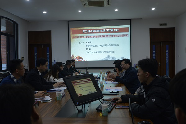第二分会场主题是“全国政法院校公安学教材统编会议暨经济犯罪侦查前沿问题研究”,由我院副院长董邦俊和华东政法大学刑事司法学院副院长虞浔担当主持人。与会专家学者就公安学教材编写中的热点问题进行了热烈的讨论,主要有犯罪网络化、大数据在侦查中的应用、电子取证问题以及经济犯罪侦查的基础问题等;期间,就教材编写及分工情况达成了初步共识,会议取得了显著效果。