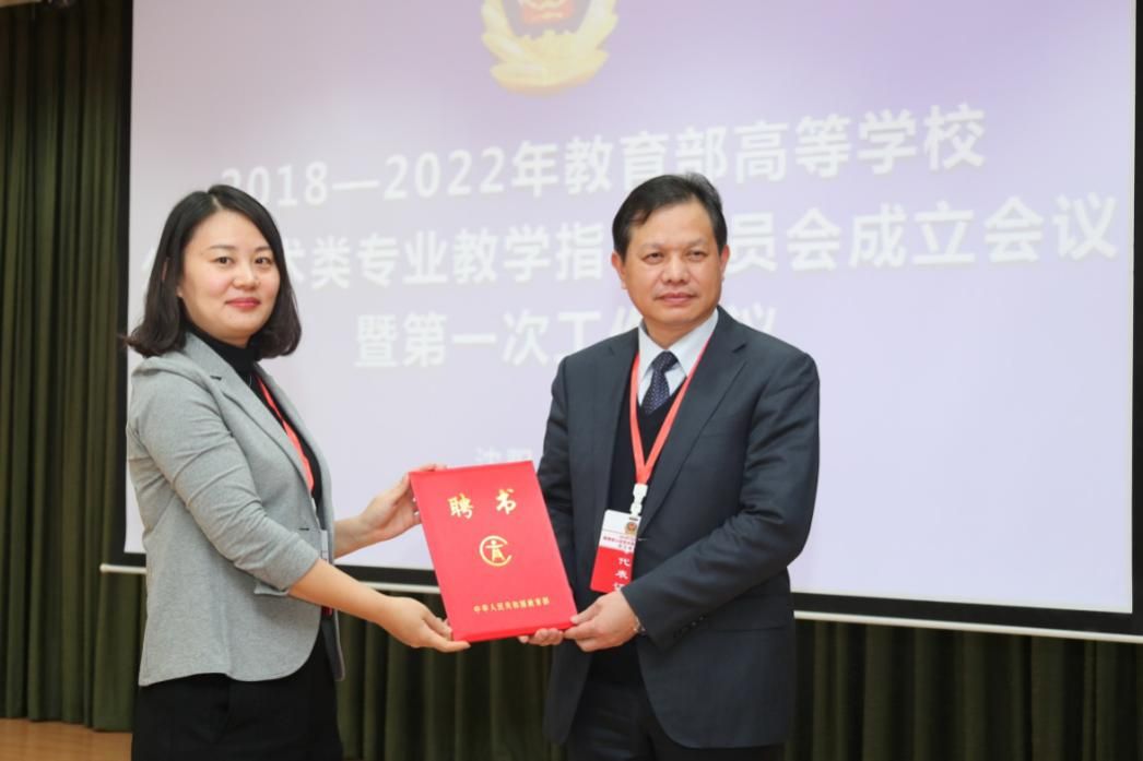 在第一阶段会议上,朱蓓蓓副处长、郝宏奎主任委员为本届公安技术类专业教学指导委员会副主任委员、秘书长颁发了聘书。
