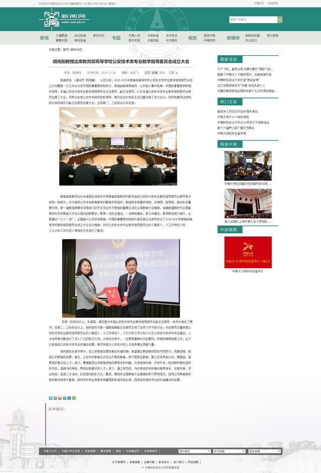 12月22日,2018-2022年教育部高等学校公安技术类专业教学指导委员会成立大会暨第一次工作会议在中国刑事警察学院举行。教育部高等教育司、公安部人事训练局、中国刑事警察学院相关领导、本届公安技术类专业教学指导委员会主任委员中国刑事警察学院郝宏奎院长、中国人民公安大学刑事科学技术学院院长蒋占卿、南京森林警察学院院长张高文、浙江警察学院院长丁宏及中南财经政法大学刑事司法学院院长胡向阳等四位副主任委员,以及本届公安技术类专业教学指导委员会委员出席了大会。另有20余所公安本科院校的校领导、教务处处长和系主任应邀列席了本次会议。