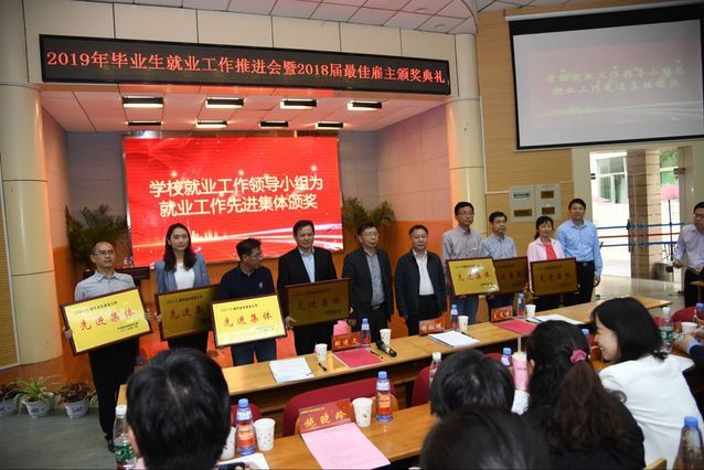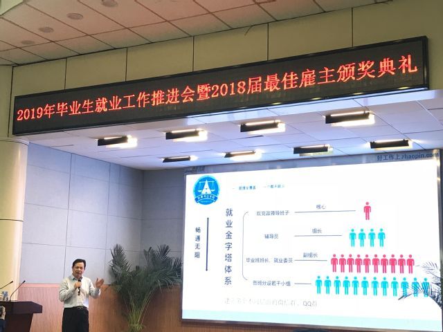 新闻网讯(通讯员 赵轶)4月18日下午,2019年毕业生就业工作推进会暨2018届最佳雇主颁奖典礼在文潭楼一楼招聘厅召开。校长杨灿明、党委副书记王文贵、副校长邹进文,十佳雇主单位代表人以及获得先进集体的学院代表出席本次大会。