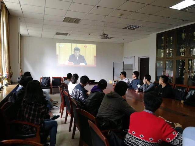 我院同学们也以学生党支部、班级团支部甚至寝室等为单位通过网络直播平台进行观看学习和交流。