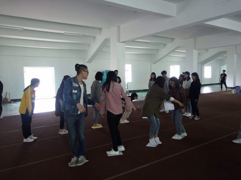 本次活动分为4人一组逐项进行,包含“坐地起身”“比划猜词”“我们说的不一样”和“搭桥过河”四个项目。“坐地起身”项目需要同学们手拉手坐成一圈,在不用手支撑地面的情况下,从地面跃起。该项目考验的是同学们的平衡力与协调性,尽管规则看似简单,但是实际完成起来仍有一定难度。有的同学轻松完成了该项任务,有的同学则有些吃力,大家用掌声相互鼓励完成了任务。“我们说的不一样”项目则要求小组成员两两一队抽取一句话,在不直接表述的情况下让队友猜出原句,该任务需要同学们有一定的描述能力,同时也考验了小组的默契度,成功调动起了同学们的积极性,使得场面更加融洽。在“搭桥过河”项目中,每个小组中选拔3名同学手持4块地毯,共同踩着地毯向终点前进。各组在商议之后,有的选择大步前进,也有的选择小步快走,尽管风格迥异,但各组都竭尽全力地向终点迈进。场上的同学们密切配合、齐心协力,场下的同学们也纷纷为进行项目的同学加油鼓劲,同学们的加油呐喊声响彻整个赛场。