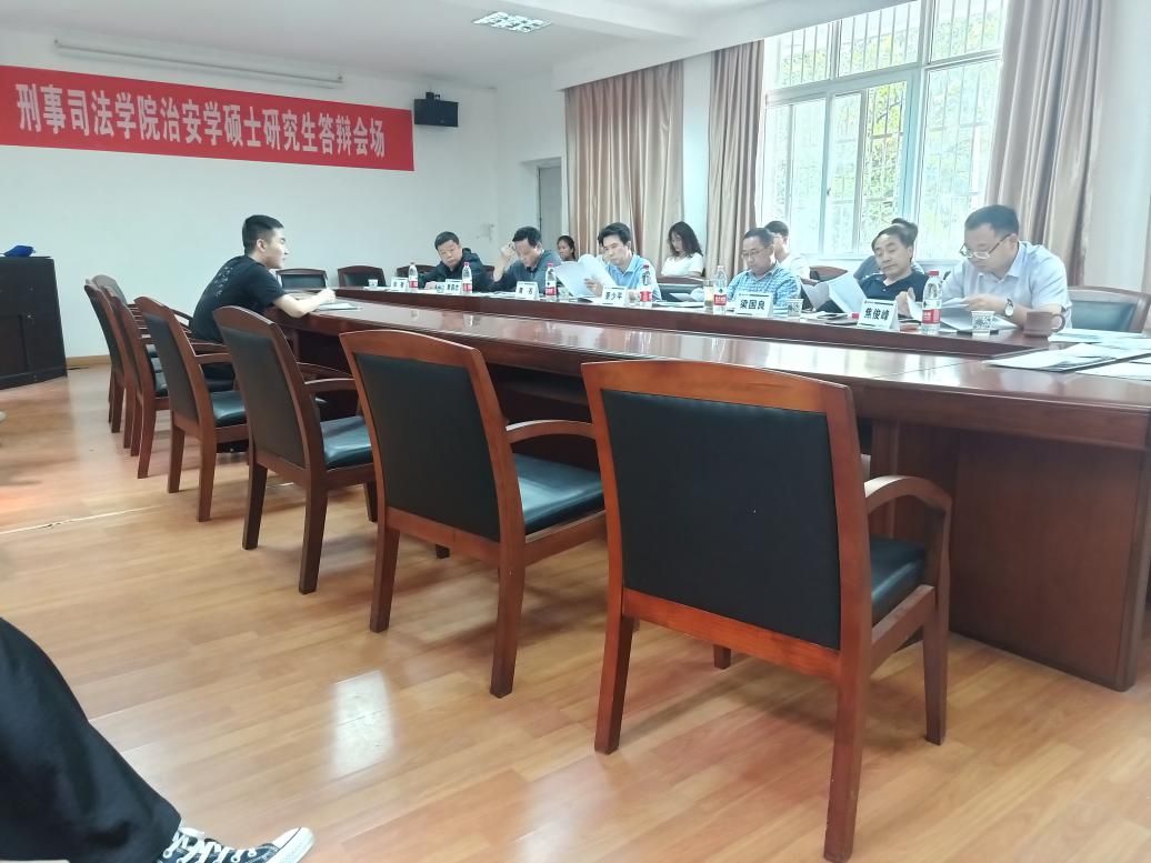 (学生记者伍绍歌)5月20日下午14时,我院在文清楼一楼会议室进行2016级治安专业研究生硕士论文答辩。湖北警官学院黄石副教授、中南财经政法大学董少平教授、梁国良副教授、章昌志副教授、焦俊峰副教授、张敬副教授6人组成答辩委员会,黄石副教授任答辩委员会主席。参与答辩的3名硕士研究生为2016级治安专业的李晓敏、文雅、胡阳阳同学。