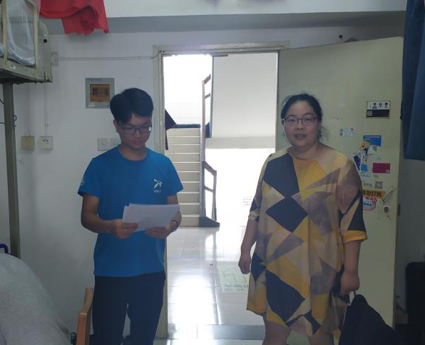 (学生记者伍绍歌陈子菲)暑假将至,为让学生度过一个快乐、充实、安全的假期,2019年6月29日上午,研究生辅导员彭倩老师和研会成员走访研究生宿舍进行暑期安全教育,并对宿舍进行文明、卫生、安全检查。